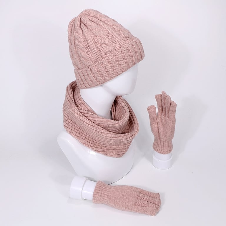 Conjunto de invierno para mujer: gorro, bufanda y guantes.
