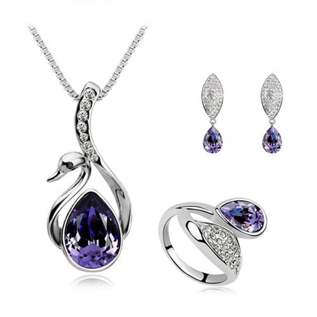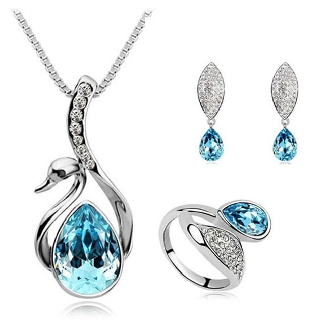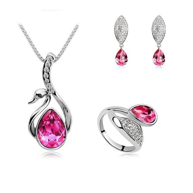 Hermoso conjunto de joyas para mujer con elegante cisne y piedras brillantes.