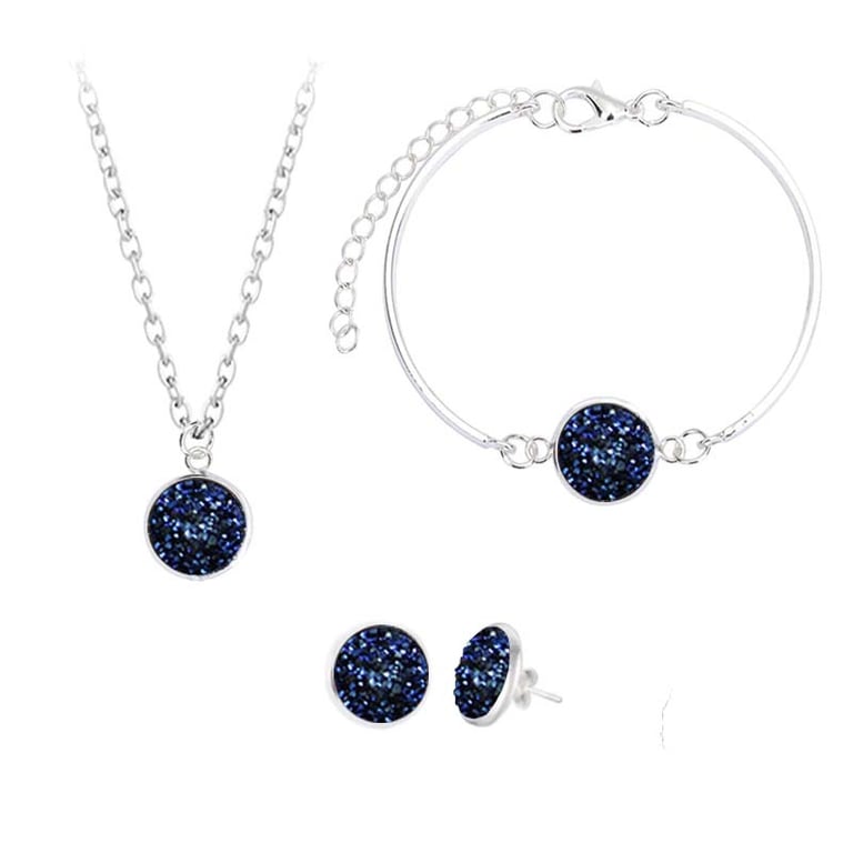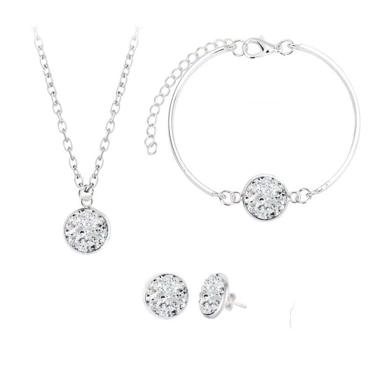 El conjunto de joyas incluye un collar, una pulsera y pendientes.