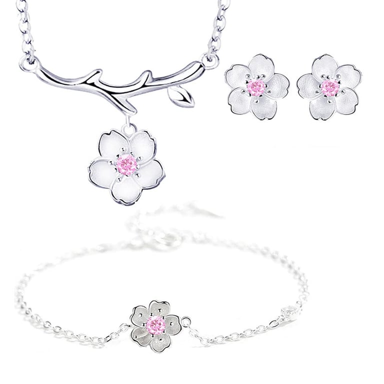 El conjunto de joyas incluye un collar, una pulsera y pendientes.