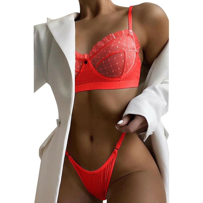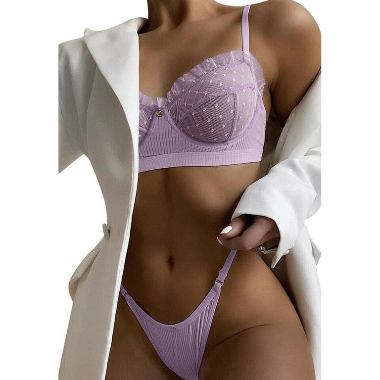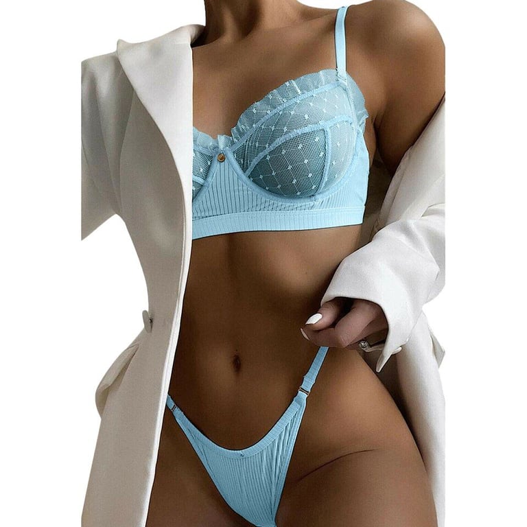 Hermoso conjunto de sujetador y bragas transparentes para mujer.