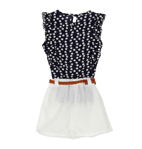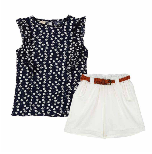 Conjunto de niña estiloso que incluye una blusa y pantalones cortos con un diseño hermoso.