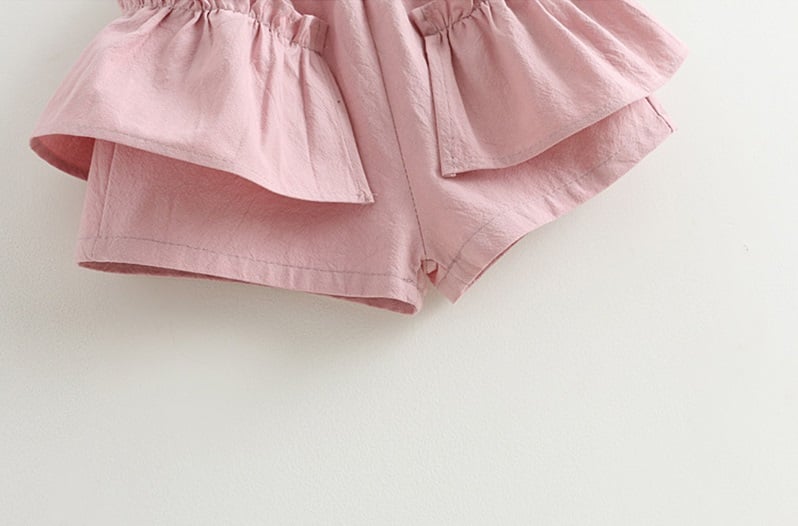 Conjunto de niña hermoso, que consiste en una camiseta sin mangas y pantalones cortos.