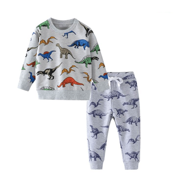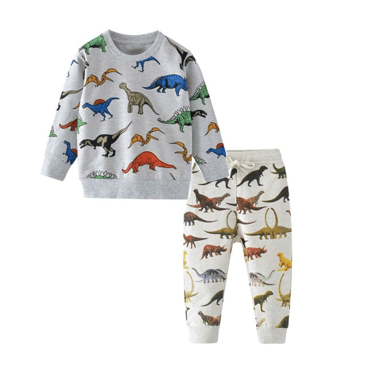Conjunto de niño estiloso con motivo de dinosaurios.