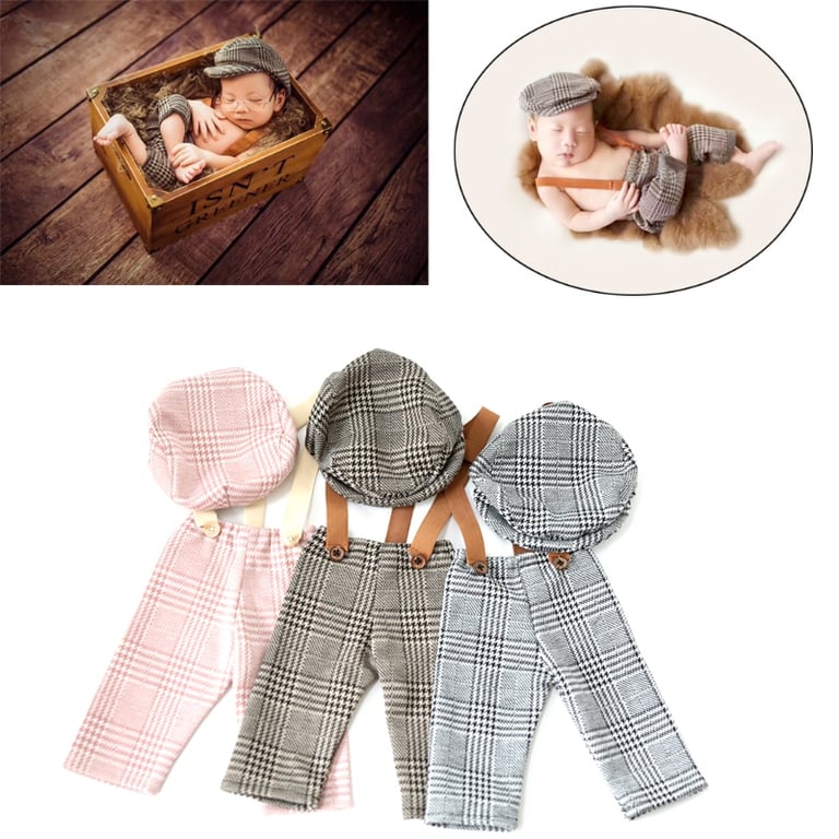 Conjunto de pantalones y gorro para recién nacidos para fotografía – 4 variantes