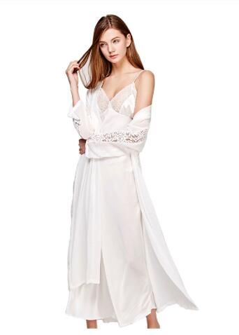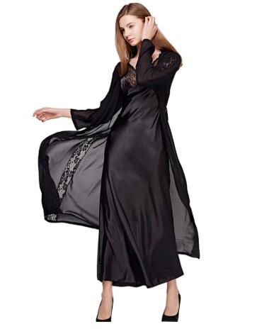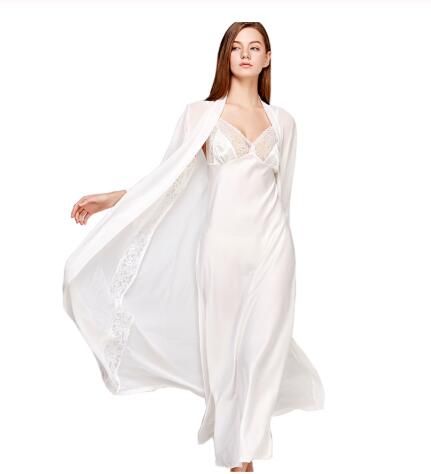 Conjunto de pijama de lujo y estilo para mujer. El conjunto incluye una camisón y una bata.