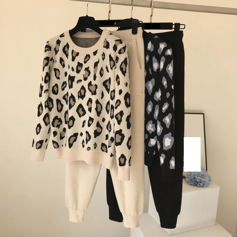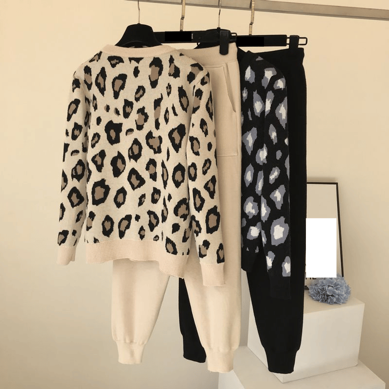 Conjunto de punto de leopardo estiloso para mujer.