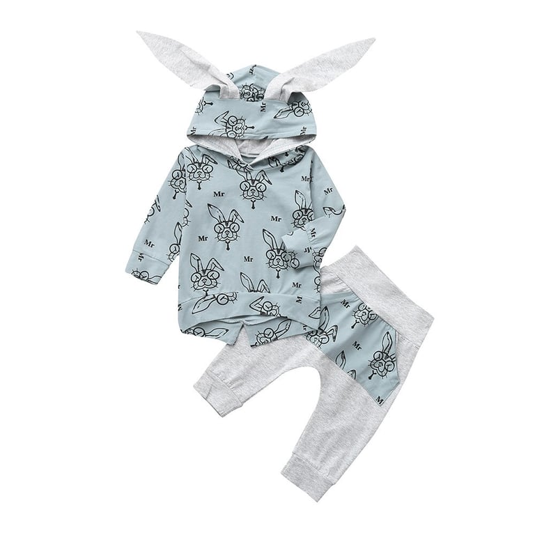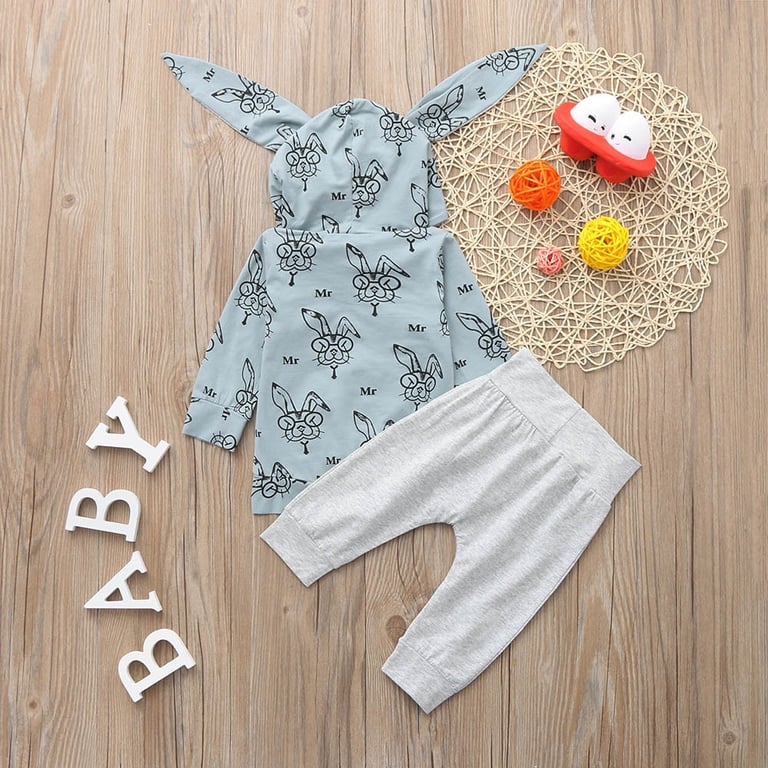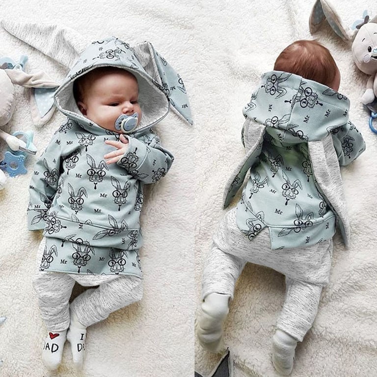 Conjunto de recién nacido: sudadera con orejitas largas y pantalones.