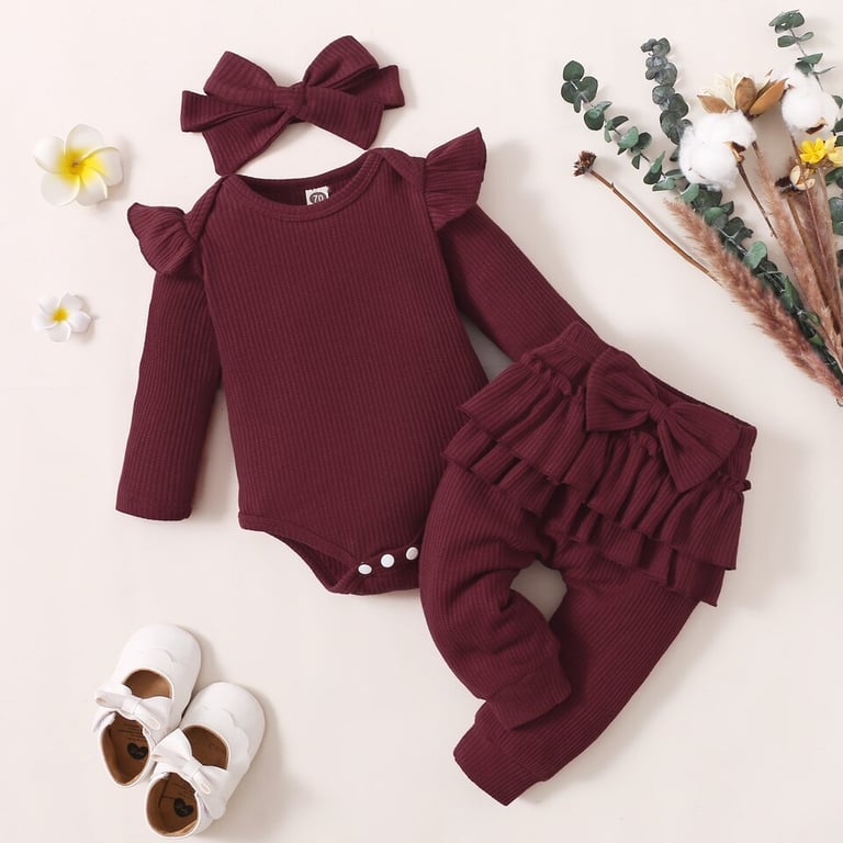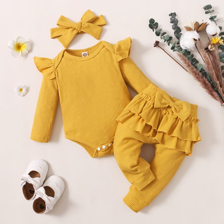 Conjunto de ropa de verano para niña: body, pantalones con volantes y diadema