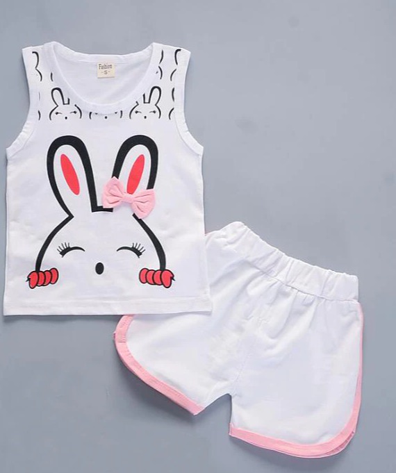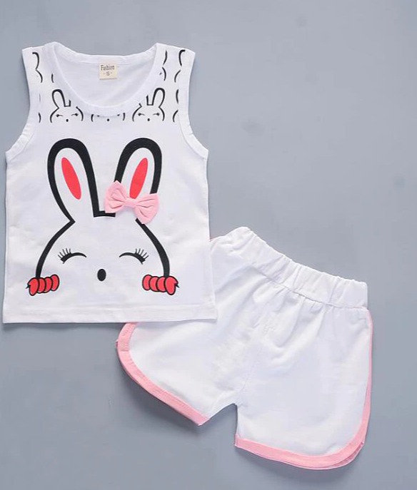 Conjunto de ropa de verano para niña con estampado de conejito.