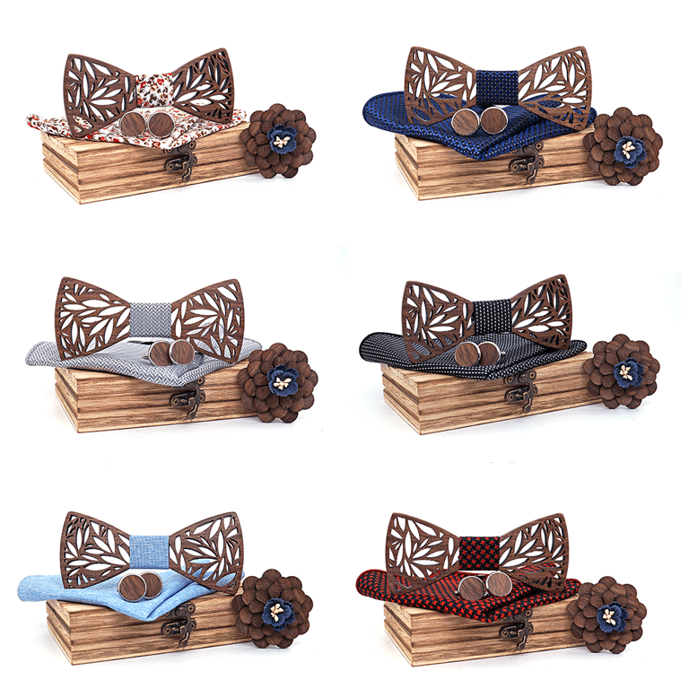 Conjunto de traje que incluye pajarita, pañuelo, gemelos, flor de solapa, clip