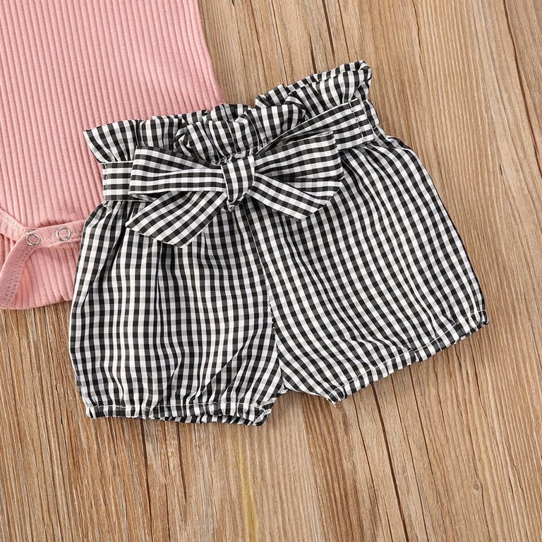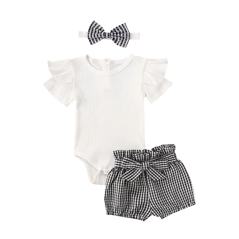 Conjunto de verano para niña – body de manga corta, pantalones cortos y diadema