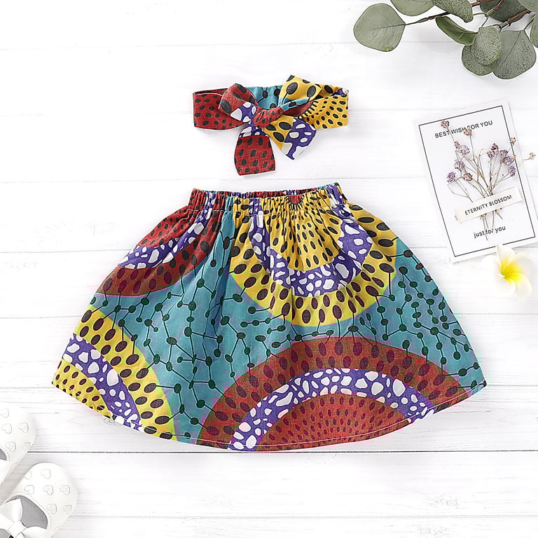 Conjunto de verano para niña compuesto por falda y diadema Étnica.