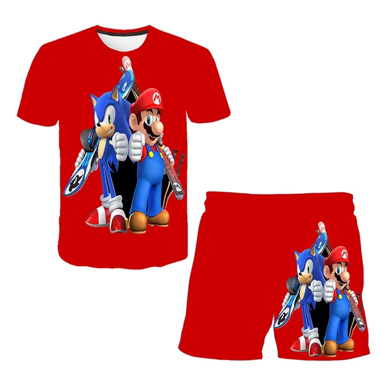 Conjunto deportivo de verano para niño con estampado de Sonic