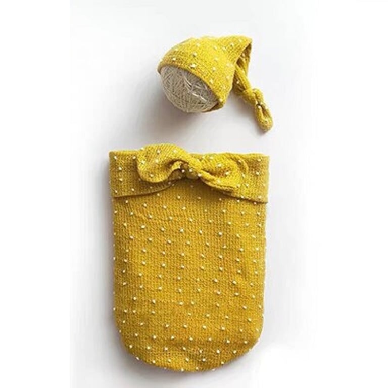 Adorable conjunto para sesiones fotográficas de recién nacidos: gorro alargado y saco.