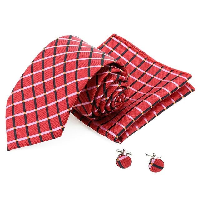 Corbata de hombre con gemelos y pañuelo - color rojo