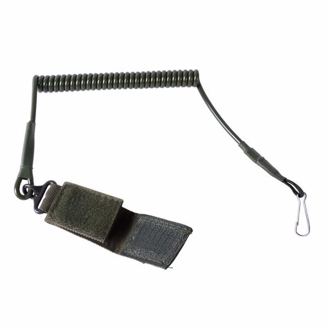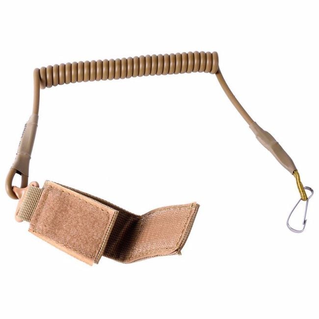 Correa táctica para pistola, que cuenta con un sistema de liberación rápida con mosquetón. Es ideal para armas de fuego más cortas, el producto se puede utilizar en Airsoft como parte del equipo de combate para cazadores o fuerzas de seguridad. Puedes elegir entre tres variantes de color.