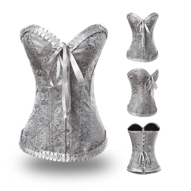 Corselet en color gris para momentos hermosos. Puede ser útil para el carnaval o para revitalizar el matrimonio. El corselet resalta perfectamente tus curvas.