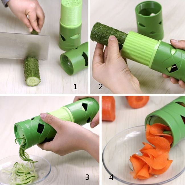 Sorprende a tus invitados con una presentación original de frutas y verduras. Corta los alimentos en forma de espaguetis o espirales. Cambia los accesorios y descubre nuevas posibilidades. Con esta herramienta serás la reina de las celebraciones.