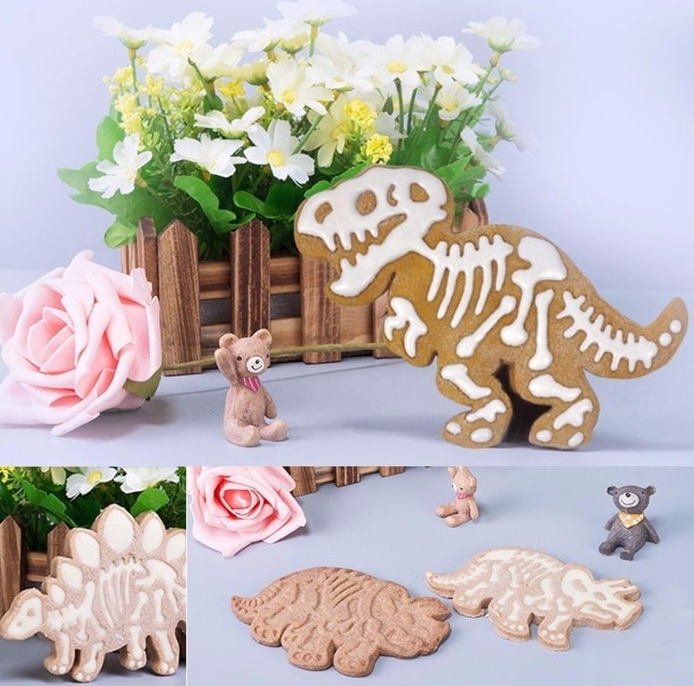 La parte superior del cortador crea la estructura del dinosaurio con presión, lo que facilitará la decoración.