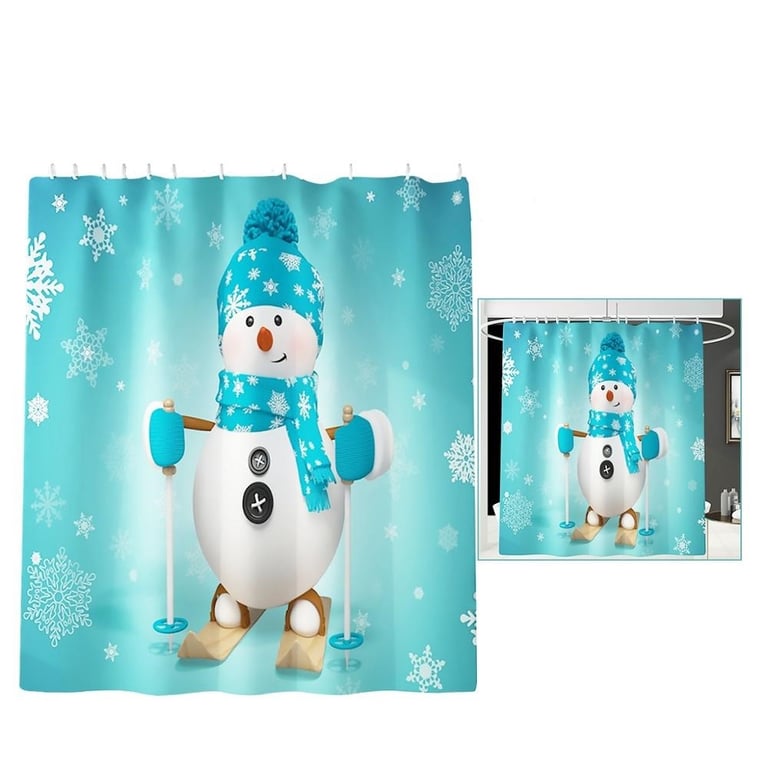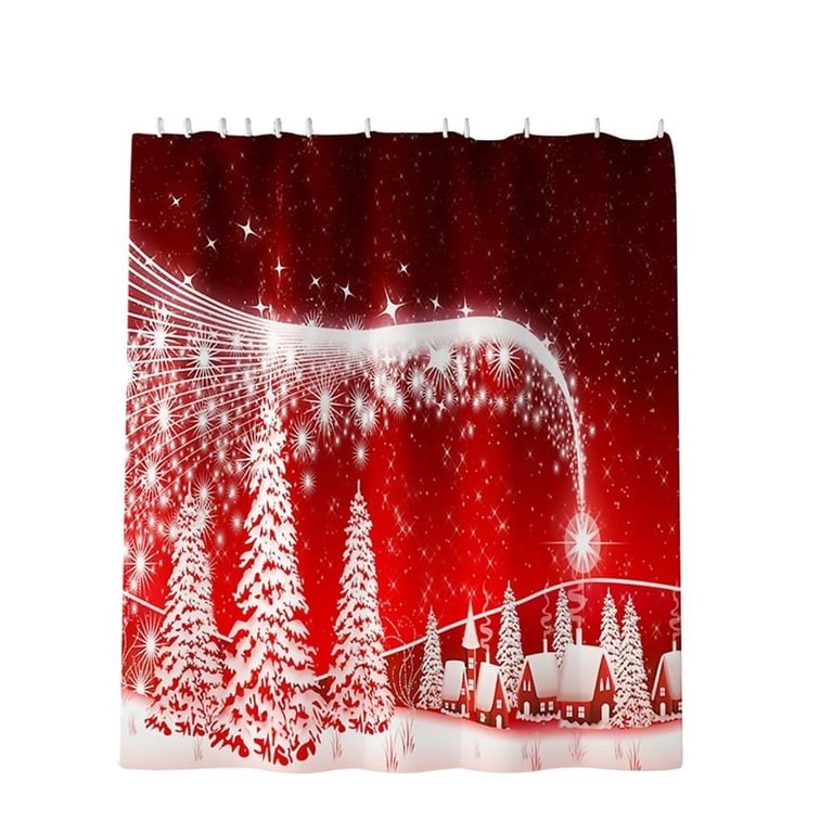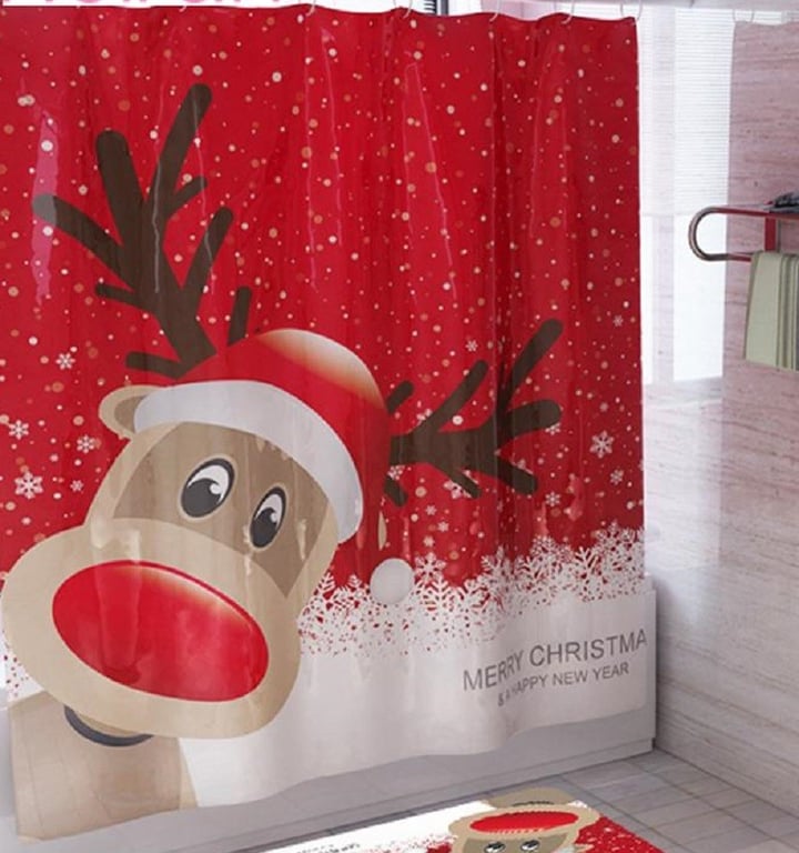 Cortina de ducha alegre con motivo navideño.
