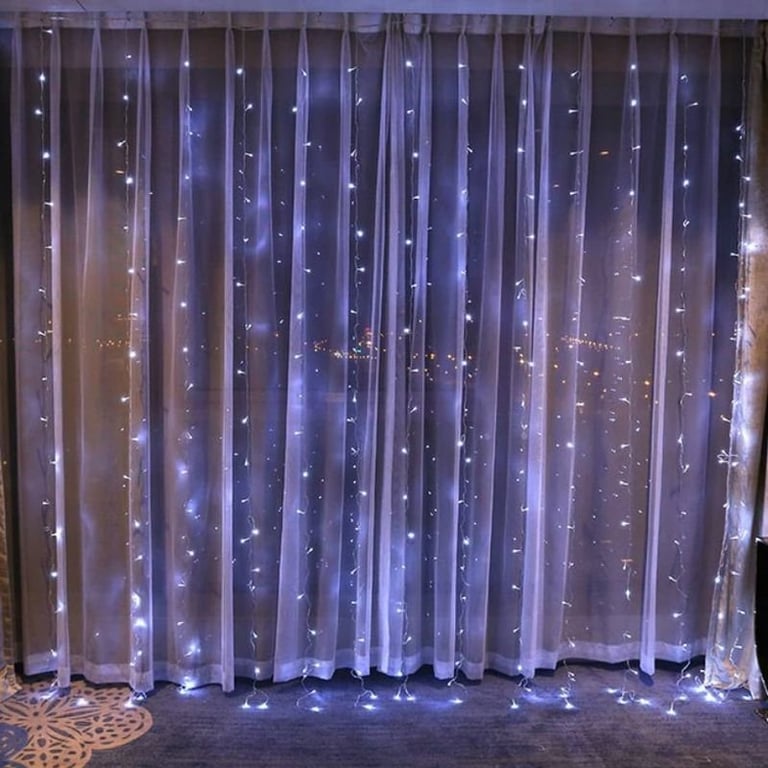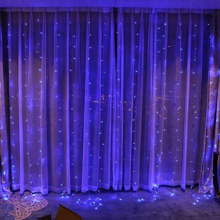 La cortina de luces LED es realmente una iluminación versátil con 300 diodos LED para su hogar y terraza. Puede colocarse en una ventana, en una puerta, entre puertas o simplemente en la pared. El consumo de energía es extremadamente bajo en comparación con las bombillas clásicas (hasta un 90% más eficiente).