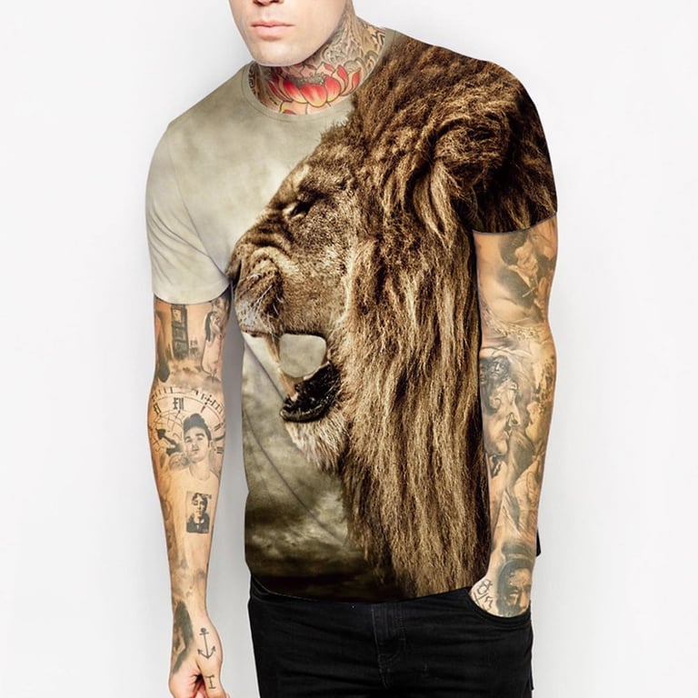 CraftedNoble™ Camiseta 3D de león para hombre estilo