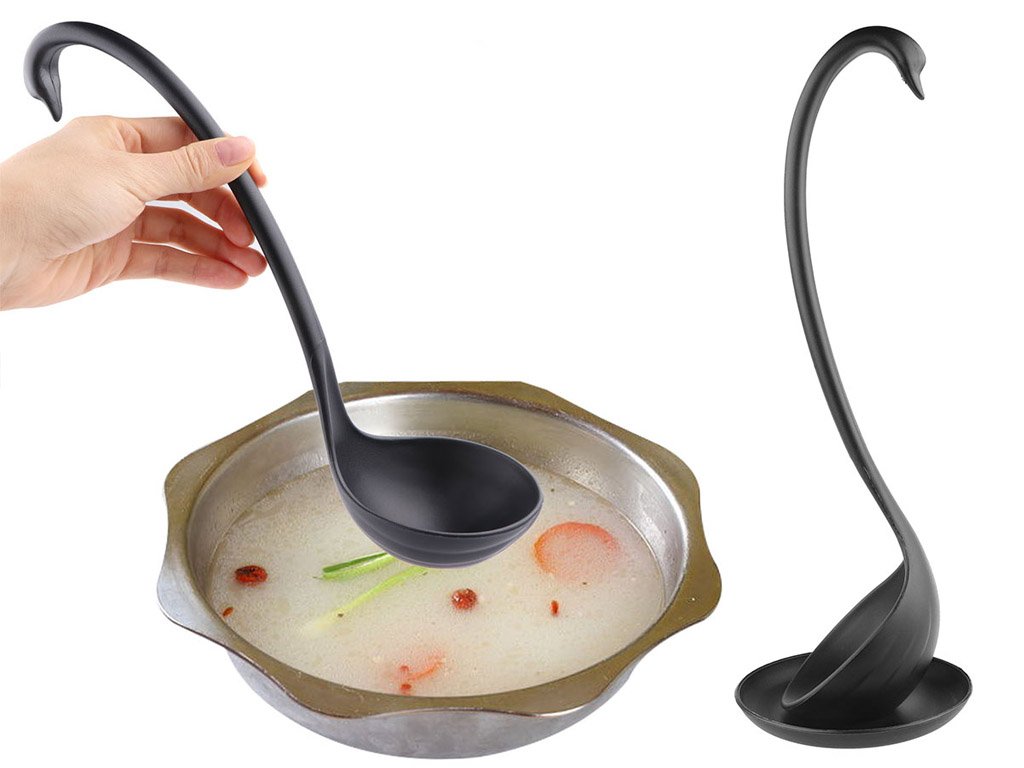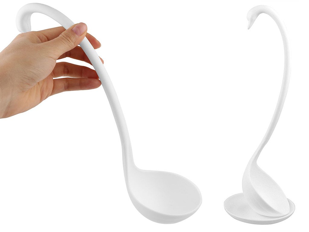 La cuchara de plástico Cisne te cautivará con su diseño y acabado originales. Puedes colocar la cuchara de cisne en posición erguida sobre tu propia base en la encimera de la cocina, y no desentonará ni en una mesa festiva. Sorprende a tus invitados con un diseño original y moderno. ¡El paquete incluye la cuchara junto con la base de apoyo! Disponible en cisne negro o blanco.