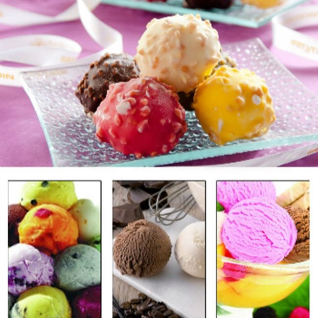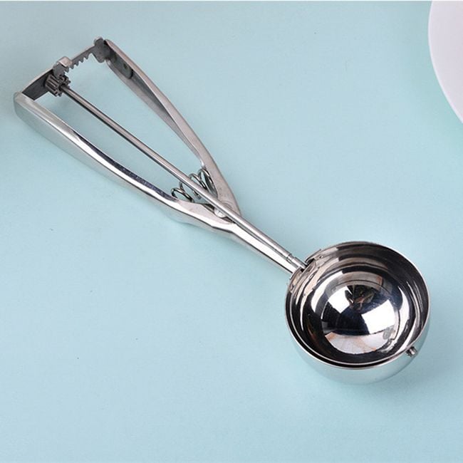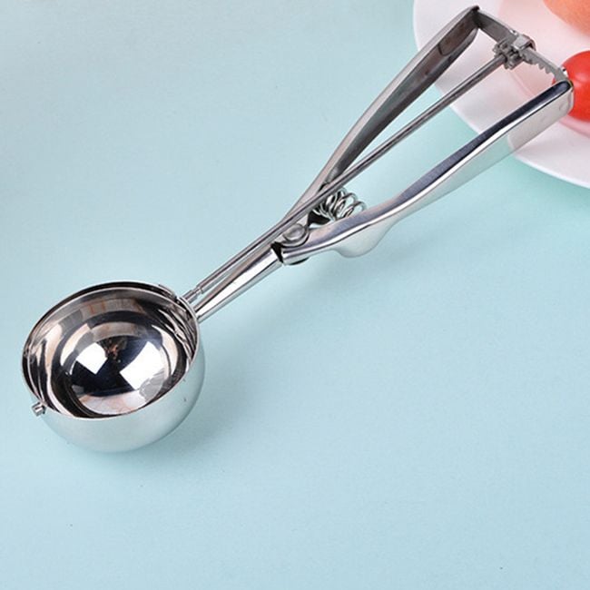 La cuchara es redonda y es adecuada para hacer bolas de fruta, verduras o helado.