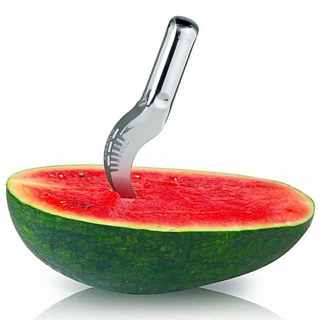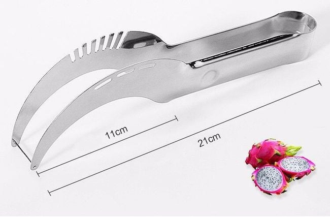 ¡Un gran complemento para tu cocina! Este cuchillo 2 en 1 es ideal para cortar sandía. Con este cuchillo con pinzas, podrás cortar la sandía de manera cómoda y sin problemas en cuestión de minutos, sin ensuciarte innecesariamente. El cuchillo también está diseñado como pinzas y en su extremo está unido con un alambre, con el que podrás cortar la sandía incluso desde su base.
