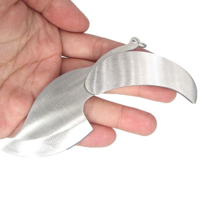Cuchillo plegable en forma de hoja.