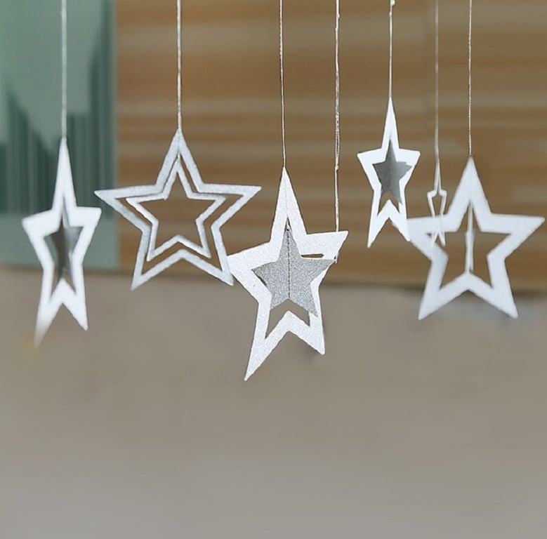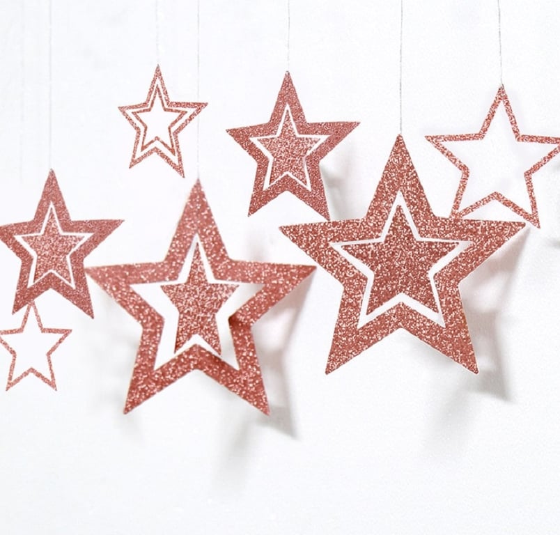 Un total de 7 estrellas de papel con purpurina de diferentes tamaños.