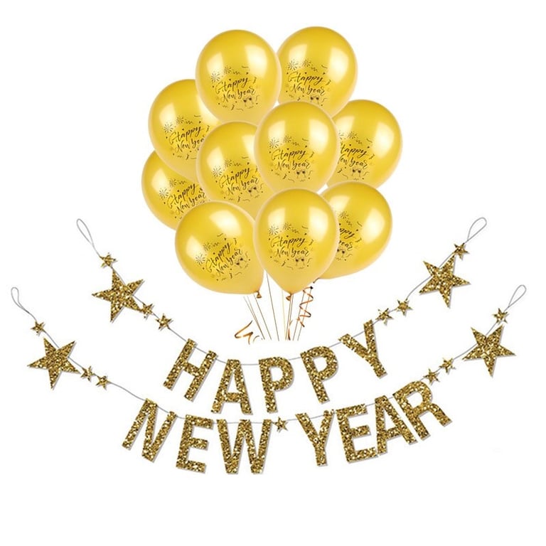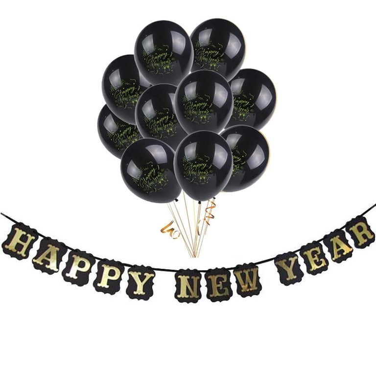 Set de 10 globos + letrero de Feliz Año Nuevo.