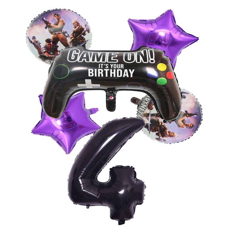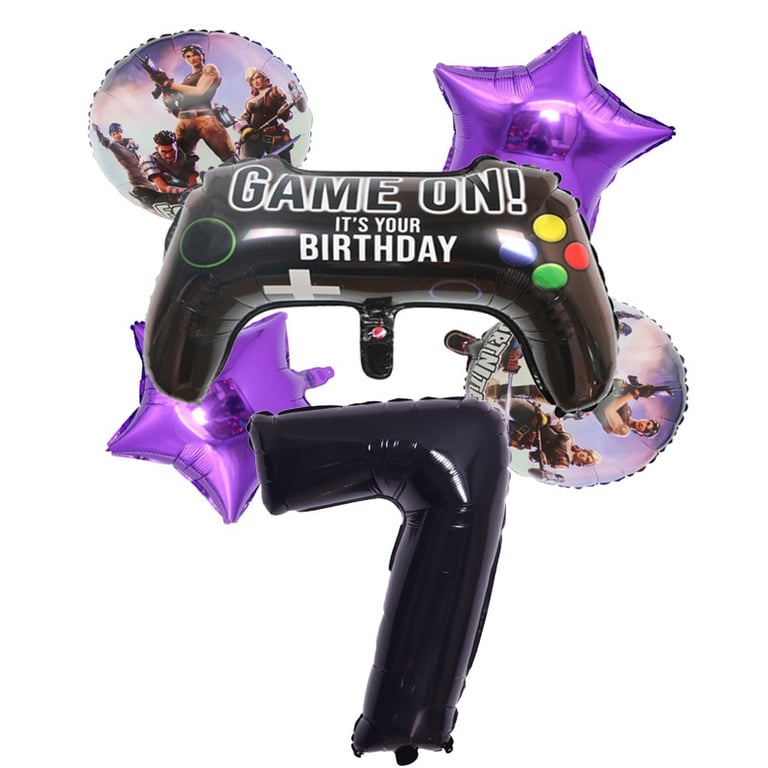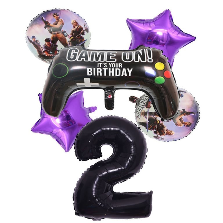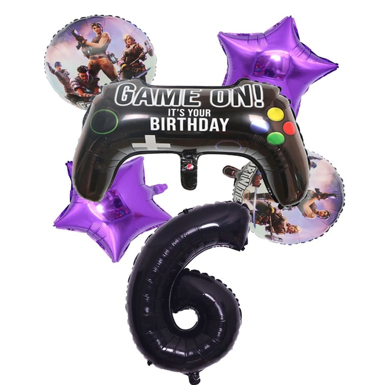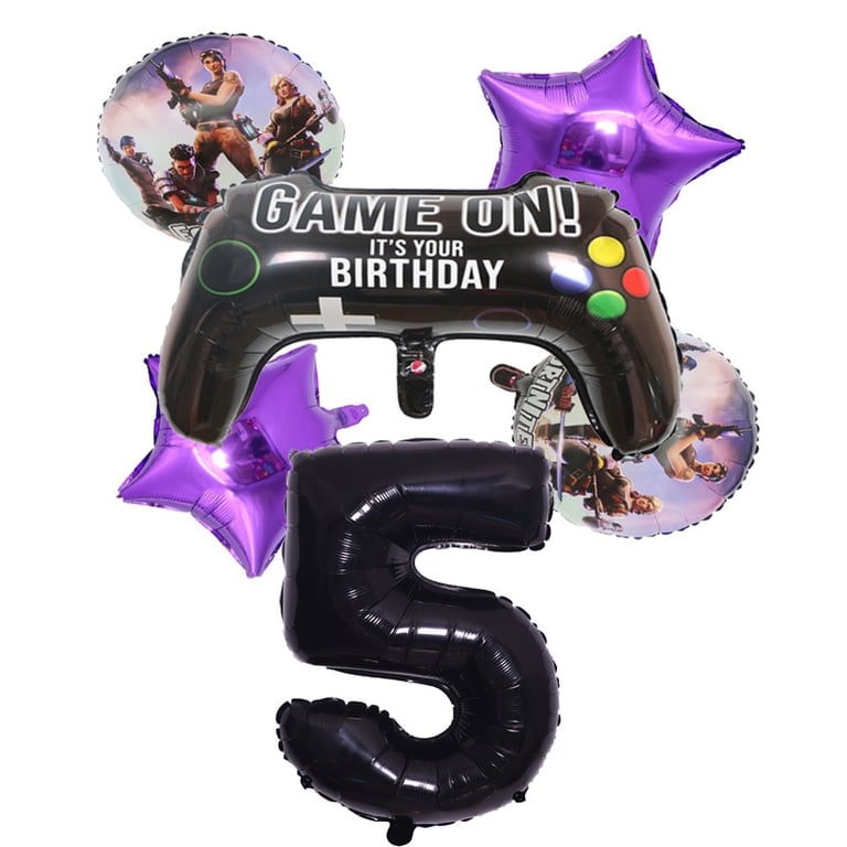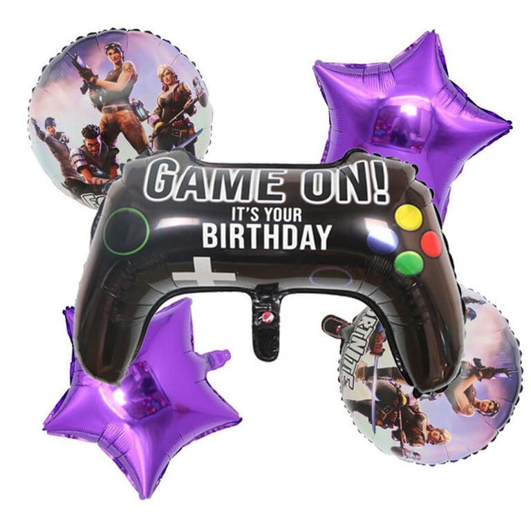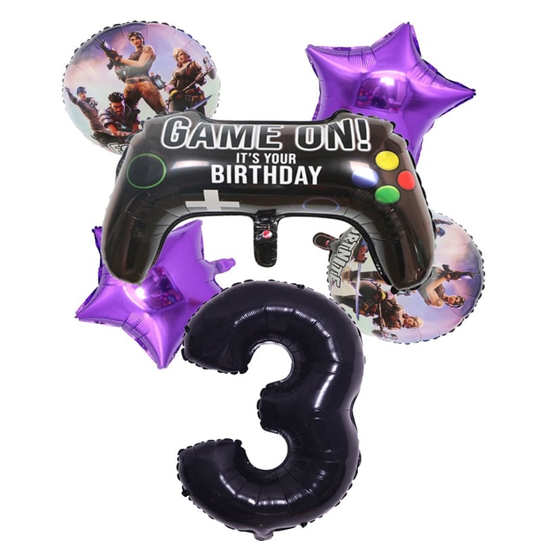 Decoración de cumpleaños elegante con el tema del popular juego Fortnite – set de globos