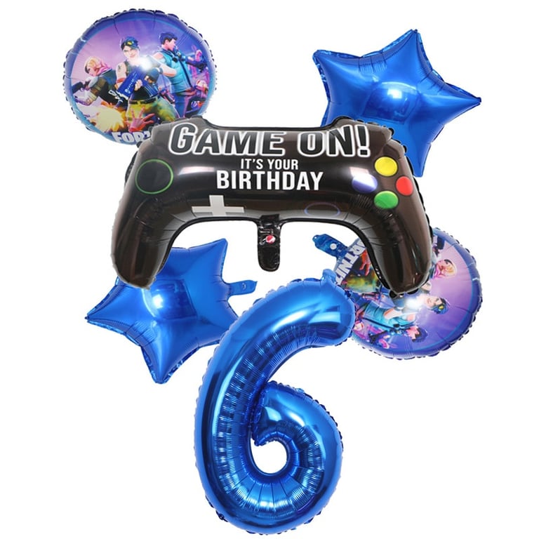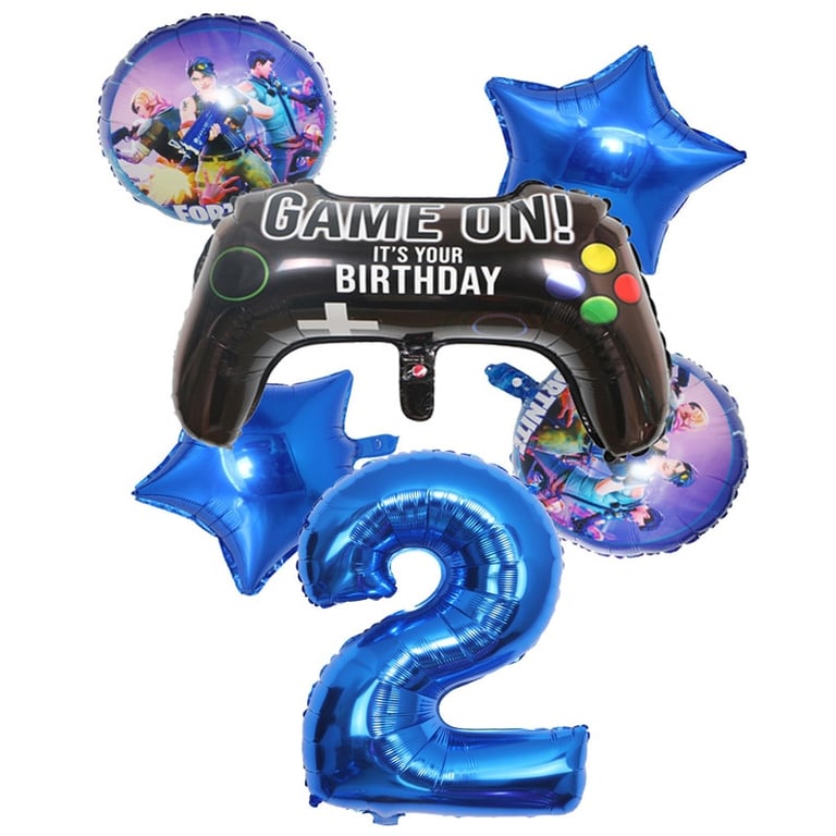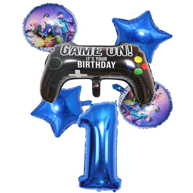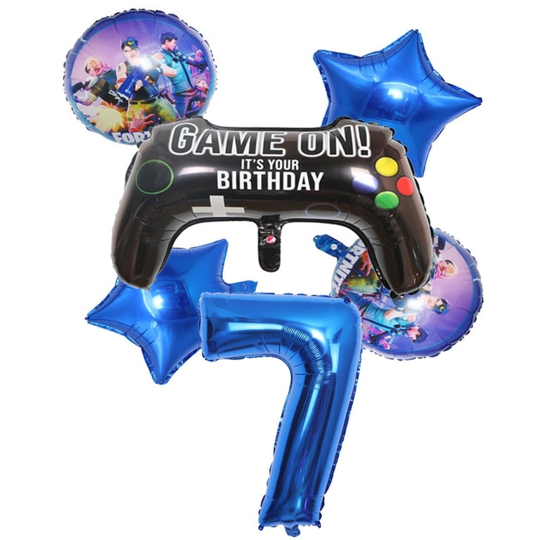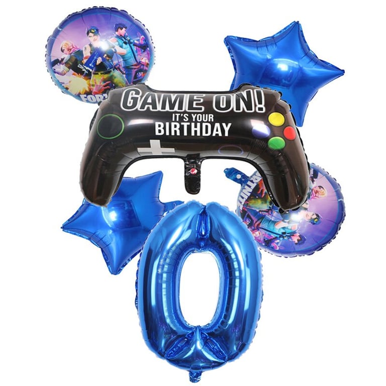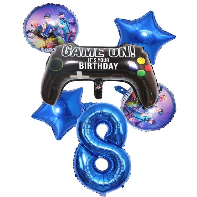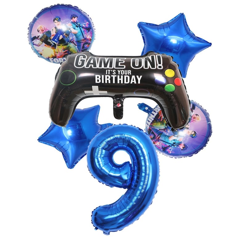 Decoración de cumpleaños elegante con el tema del popular juego Fortnite – set de globos