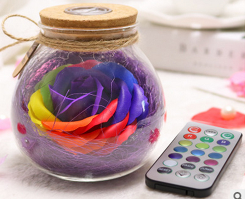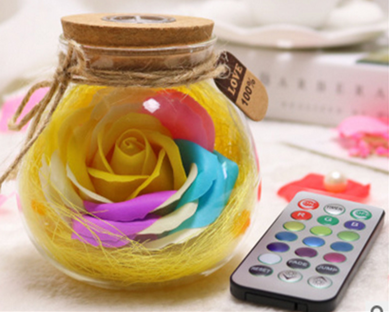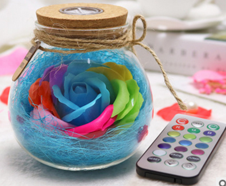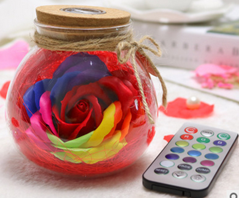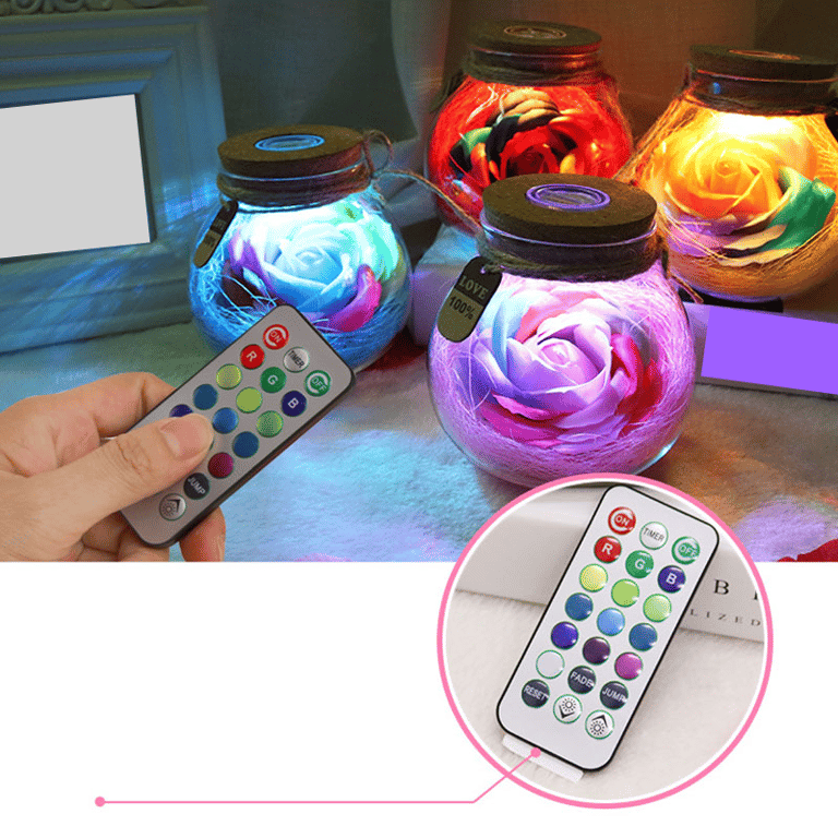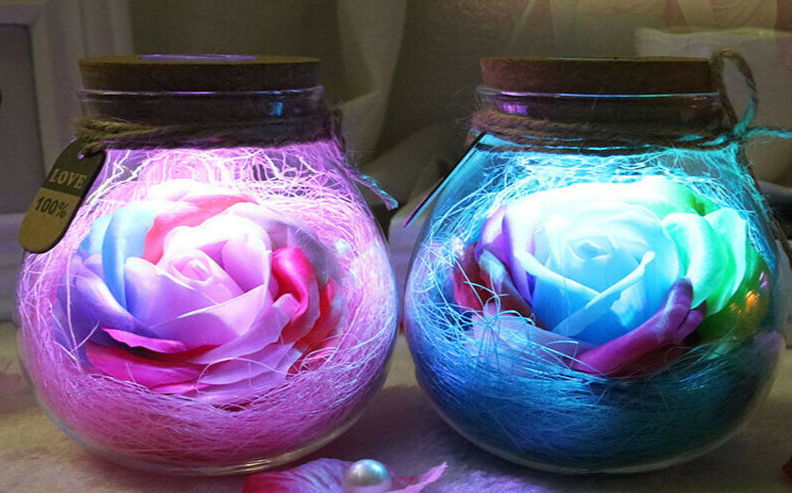 Decoración LED romántica para San Valentín – rosa iluminada en frasco