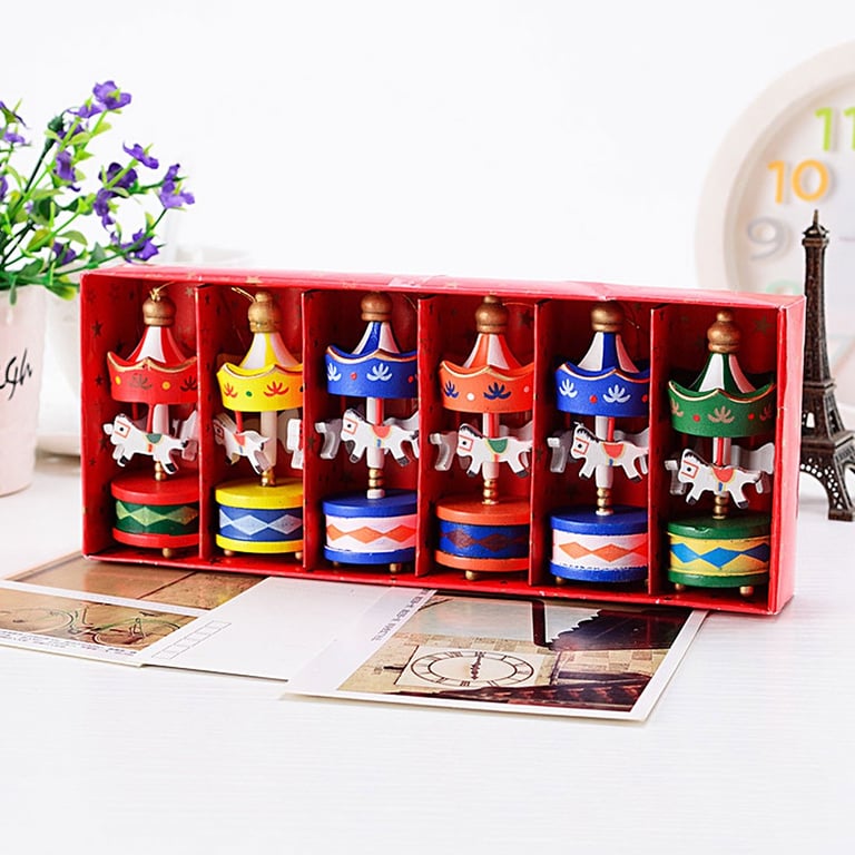 Juego de decoraciones navideñas retro de madera - carrusel de feria.