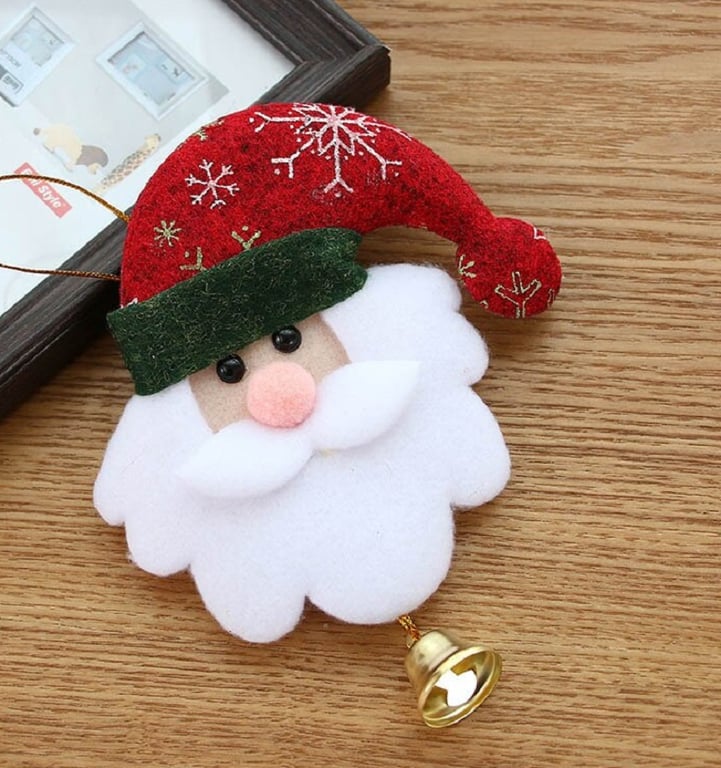 Decoración navideña de tela con campanita de metal.