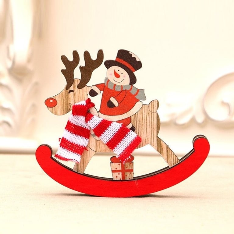 Hermosa decoración de madera - reno mecedor con figura navideña.