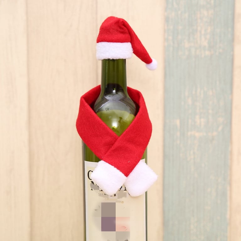 Divertida decoración navideña para botella – bufanda y gorro de Santa Claus.