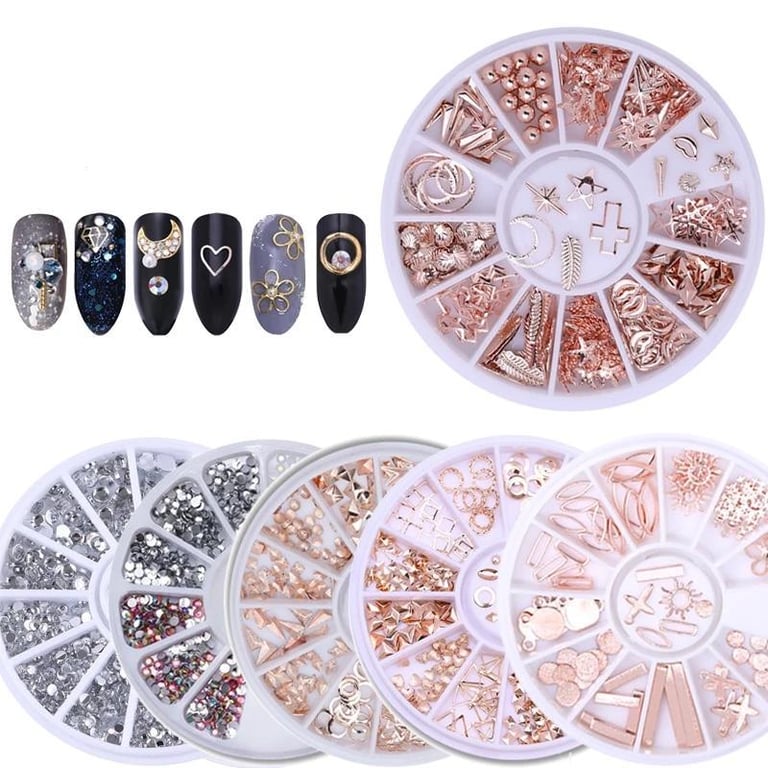 Hermosa decoración para tus uñas, varios tipos en la caja. Perlas, formas geométricas, piedras, etc.