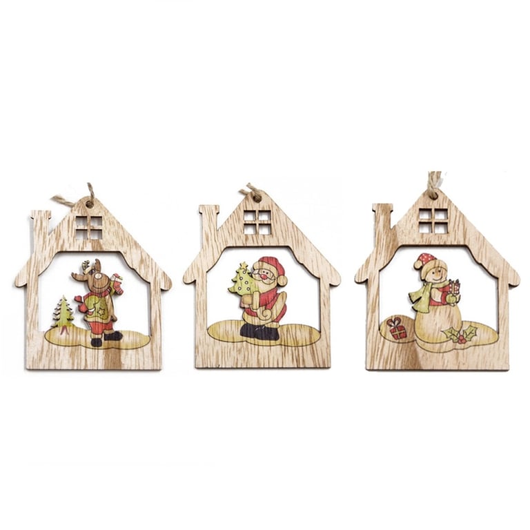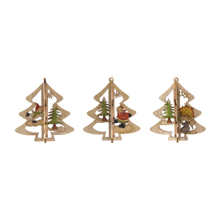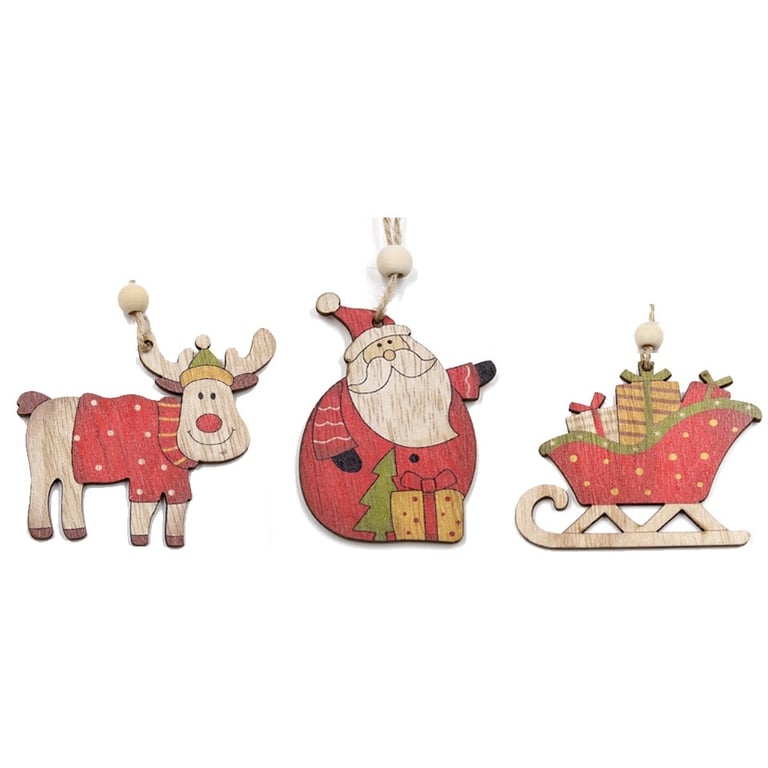 Decoraciones navideñas colgantes talladas en madera - diferentes tipos.