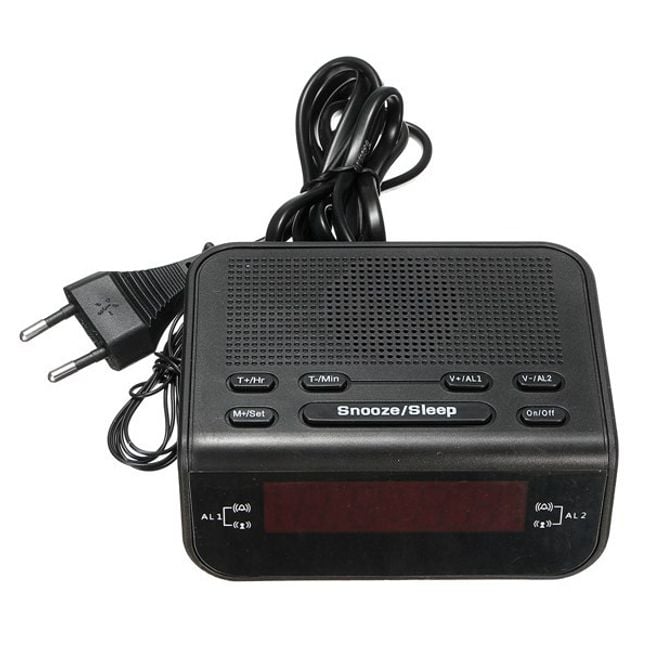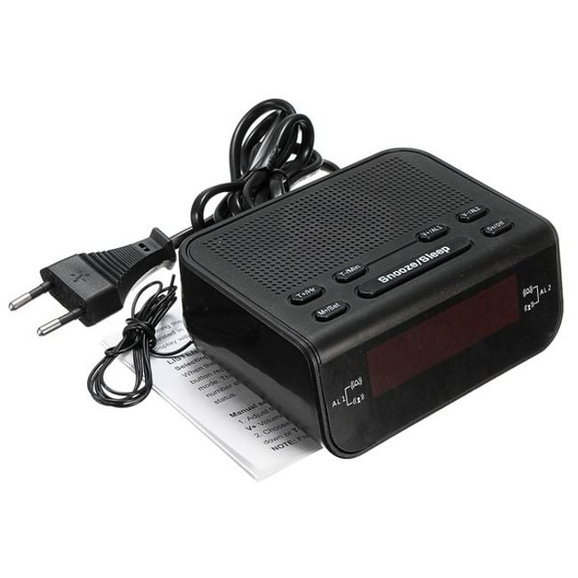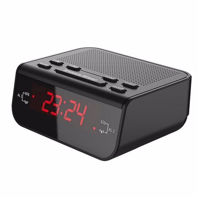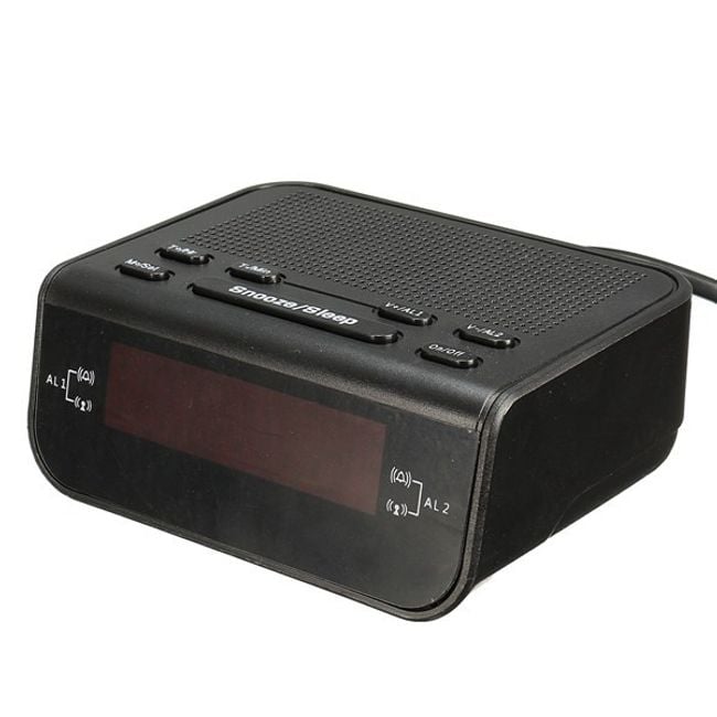 Despertador con el que nunca llegarás tarde. La pantalla digital muestra la hora de manera clara. Se pueden configurar dos horas diferentes para despertarse. El rango para sintonizar estaciones de radio es de 87,5 a 108 MHz FM. Combinación de despertador, reloj y radio, que será útil en cualquier hogar.