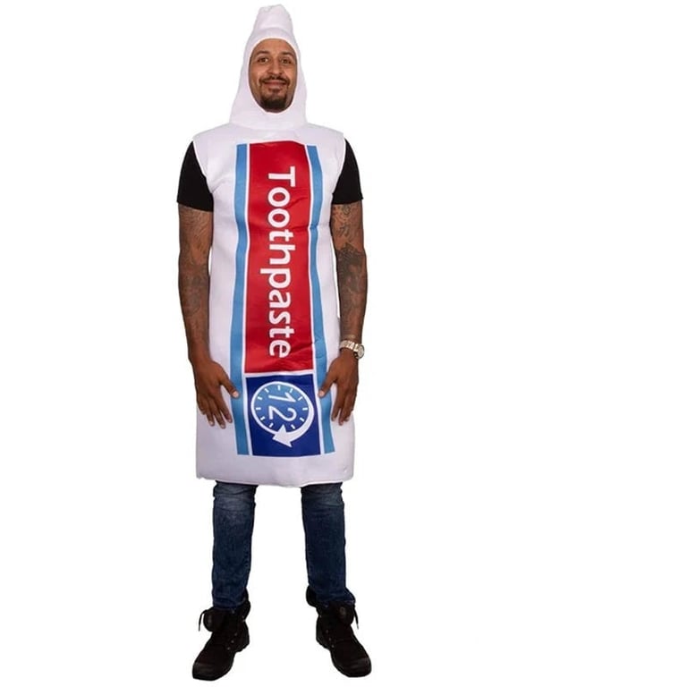 Disfraz divertido para parejas de cepillo y pasta de dientes.