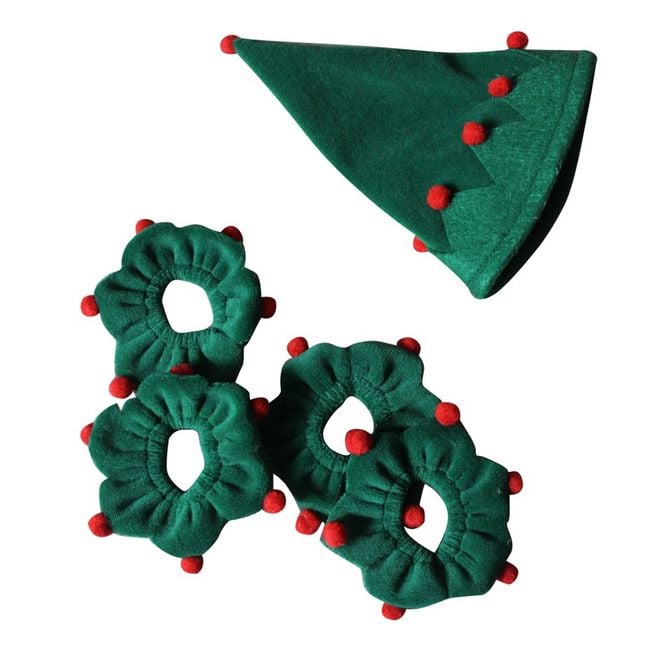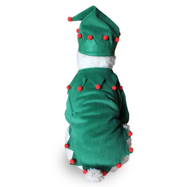 El disfraz está inspirado en los elfos navideños, consta de un traje, un gorro y fundas para las patas. Es un complemento muy estiloso para su perro en la cena de Navidad.