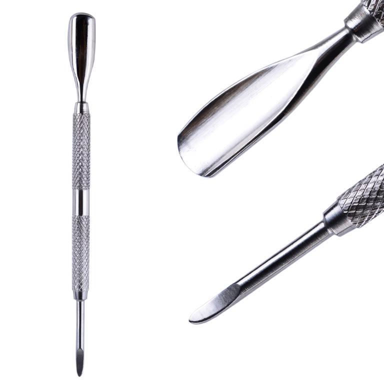 Empujador de cutículas de doble cara, un lado con una "cucharita" redondeada para empujar la cutícula alrededor de la uña, el otro lado con un "cuchillo" biselado en punta para eliminar las células muertas de la uña. Adecuado para amantes de la pedicura.