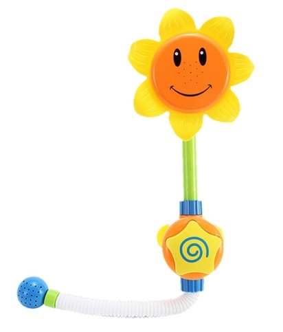 ducha infantil para la bañera en forma de girasol. El girasol se sujeta fácilmente a la bañera gracias a las ventosas.