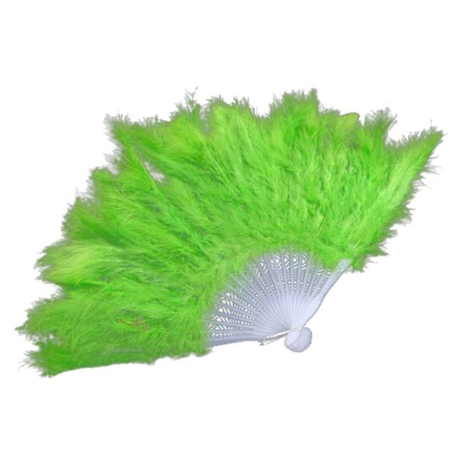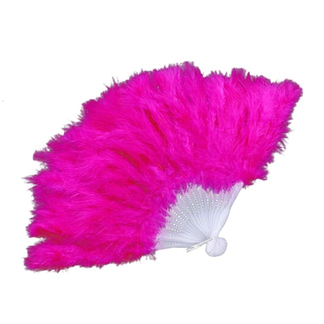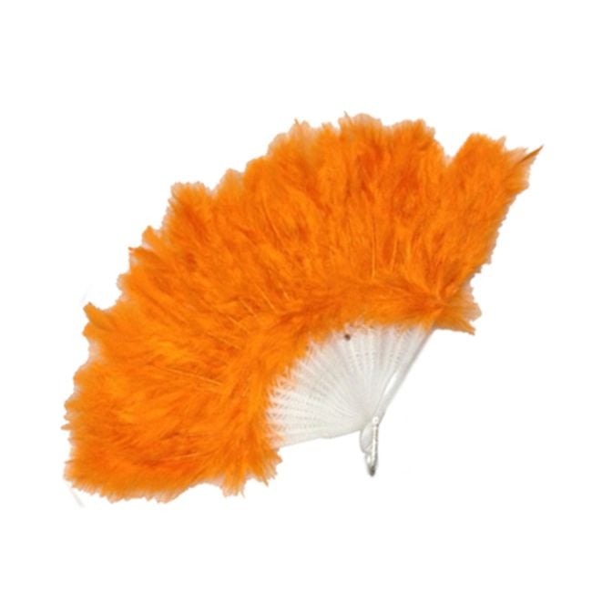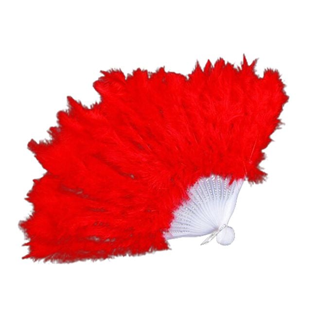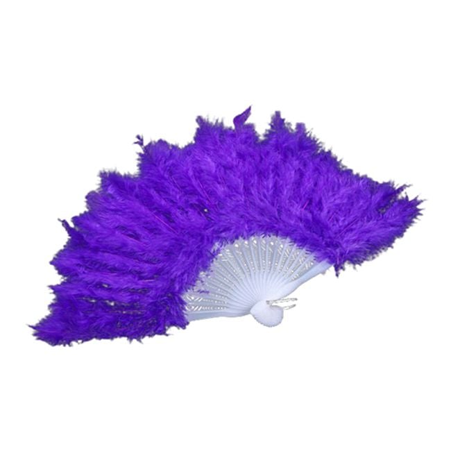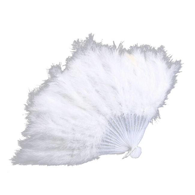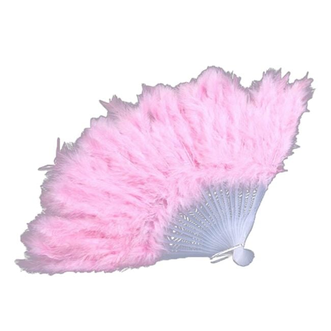 El abanico es de plumas y es adecuado como complemento para un disfraz o en una fiesta retro.