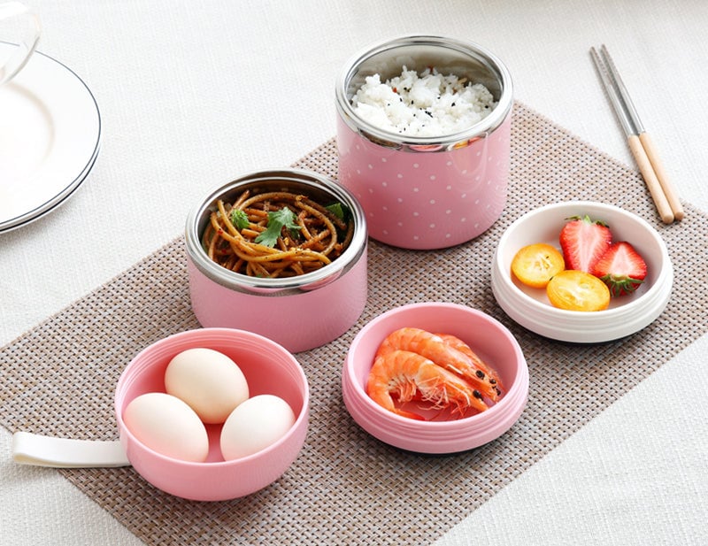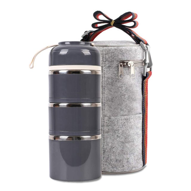 Elegante tupperware de tres niveles con funda térmica - más colores