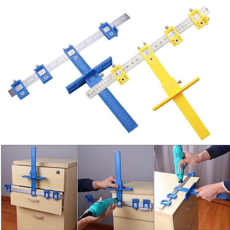 Regla práctica con accesorios para fijar distancias precisas donde desea perforar. Adecuada para materiales de madera.